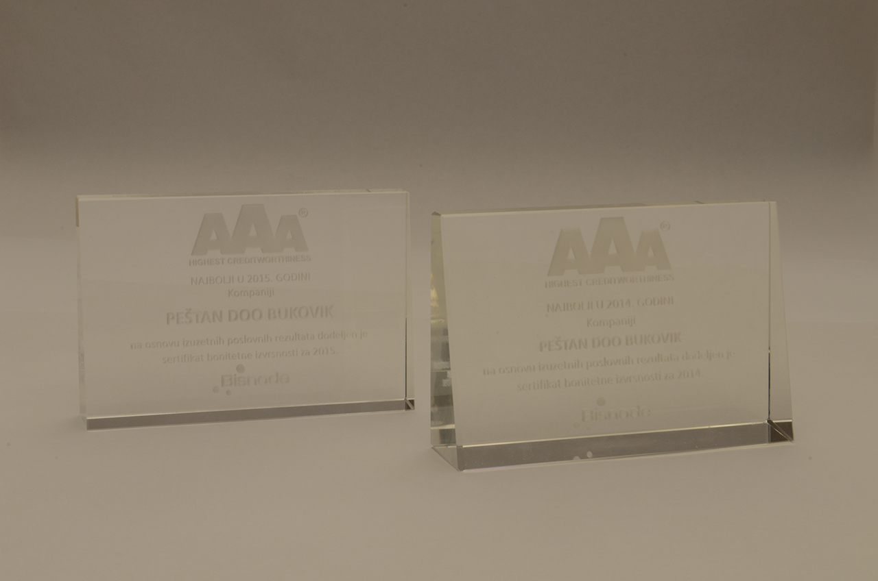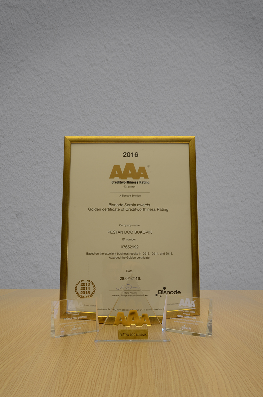 佩斯塔納三年連續(xù)載波最高等級的卓越企業(yè) - AAA和卓越因而當之無愧的信貸持有人GOLD證書,證明是最成功的公司在塞爾維亞和地區(qū)之一。